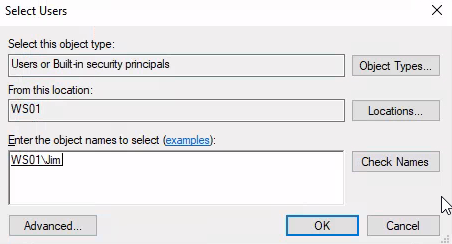Command: Get-LocalUser -Name Jim | Select-Object -Property sid