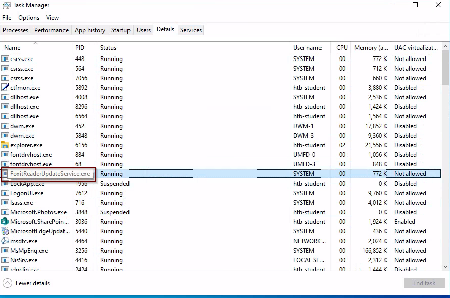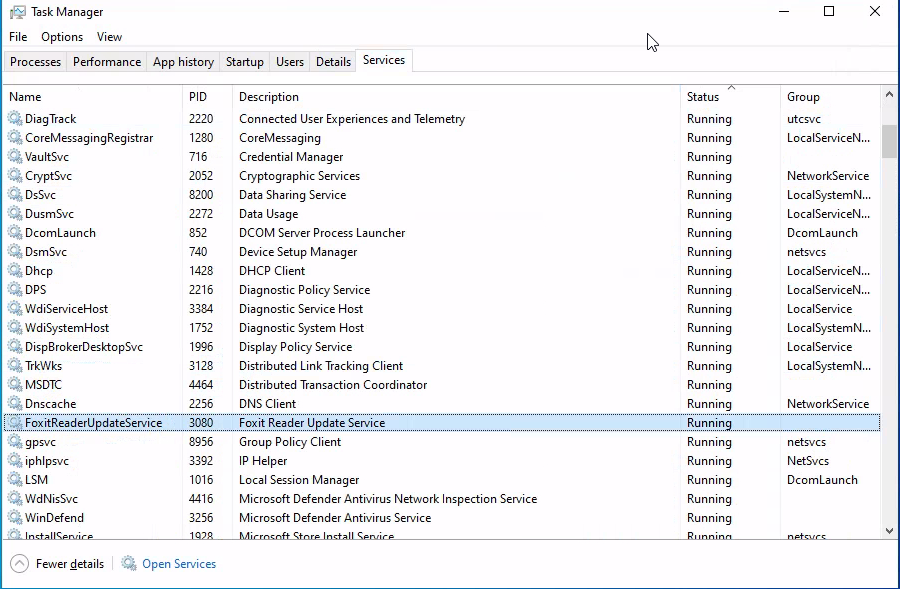 In the Services tab of Task Manager, I found a running service called "FoxitReaderUpdateService". This is definitely not a standard service.