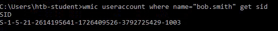 wmic useraccount where name="bob.smith" get sid